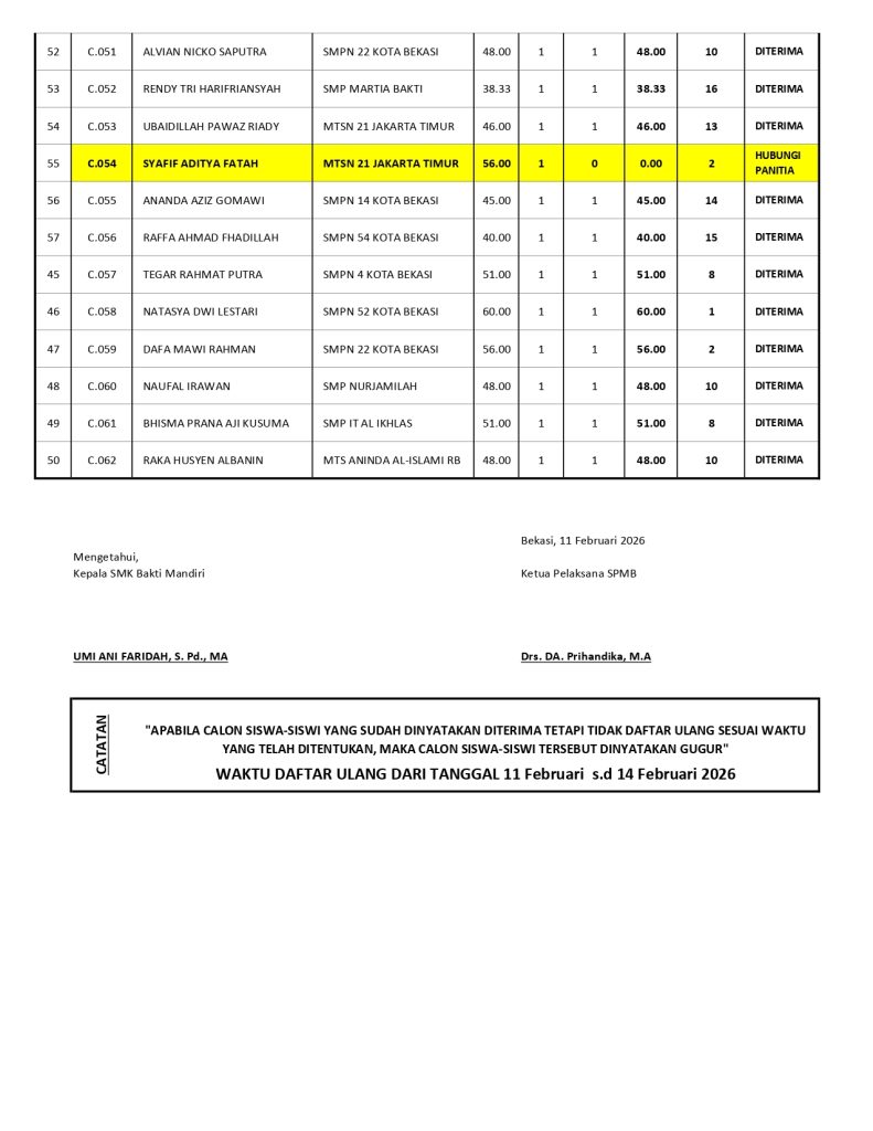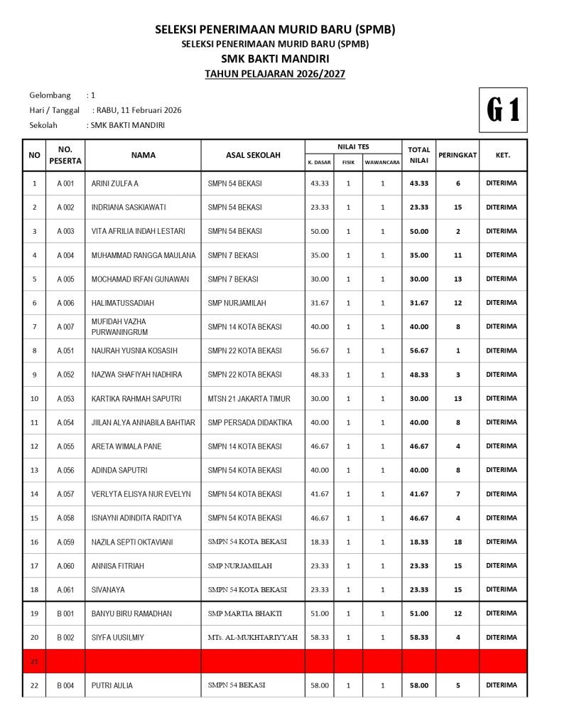SMK Bakti Mandiri Bekasi menyelenggarakan kegiatan Sosialisasi Program Kerja Kelas XII pada Kamis, 11 September 2025. Acara ini dihadiri oleh orang tua, guru, serta siswa kelas XII untuk menyampaikan informasi penting terkait persiapan akhir studi, program sekolah, hingga langkah menuju kelulusan.