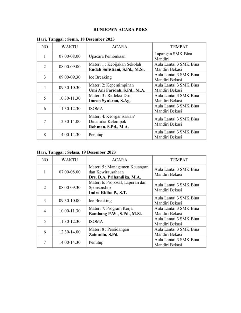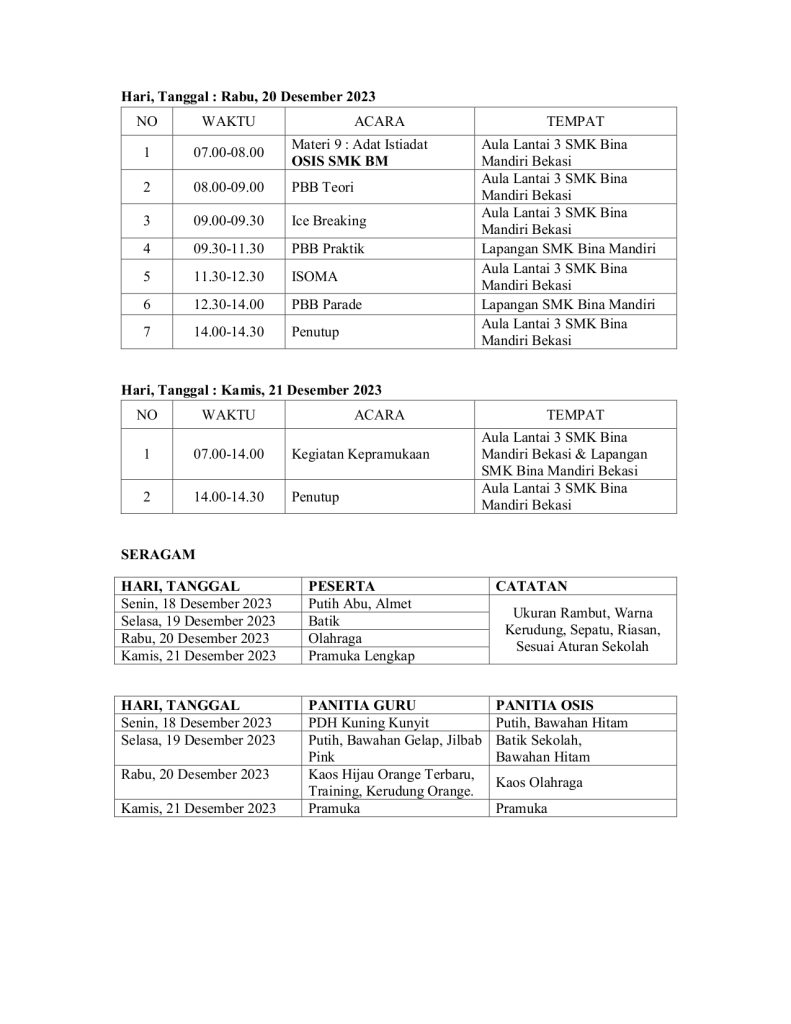 Bekasi, 10 Januari 2024 Kegiatan demi kegiatan yang termasuk dalam rangkaian pembelajaran terus dilakukan oleh SMK BAKTI MANDIRI BEKASI.